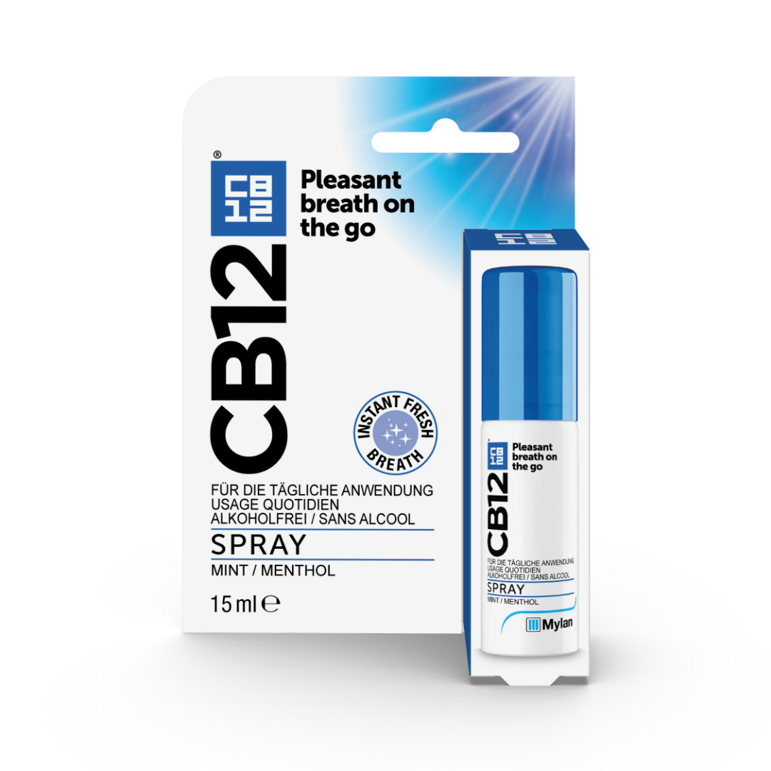 Spray ideal für unterwegs zur Auffrischung des Atems. Langanhaltende Wirkung. CB12 Spray ist ein alkoholfreies Produkt, das in einer 15-ml-Packung erhältlich ist und innerhalb von Sekunden einen frischen Minzgeschmack verleiht.