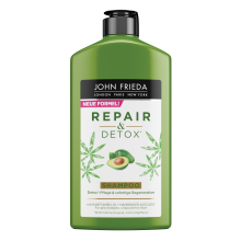 Shampoo sanft ins nasse Haar einmassieren und gründlich ausspülen. Anschliessend Repair & Detox Conditioner verwenden. Beste Regeneration in Kombination mit der John Frieda Repair & Detox Maske und dem Care & Protect Spray.
