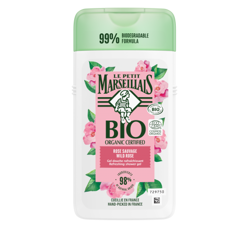 This delicate bouquet of fresh flowers is a gentle way to start the day:The BIO Rosehip Blossom Shower Gel from the new BIO certified line of Le Petit Marseillais is gentle on the skin and the environment.The shower gels of the Organic line of Le Petit Marseillais contain 98% ingredients of natural origin and only natural fragrances are used. To protect the waters, the new organic shower gels are also 99 iodegradable. To gently care for the skin, the formula has been formulated without sulfates and dyes.Inspired by nature: since 1984, Le Petit Marseillais has focused on closeness to nature and respect for the environment. The love of nature combined with the tradition of French soap masters has always been the cornerstone of the brand.
