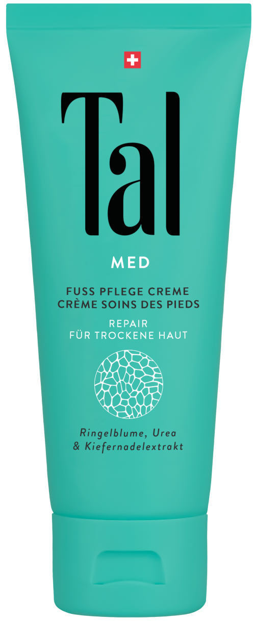 Die Tal Med Fusscreme macht trockene, rissige Haut samtweich und geschmeidig. Die einzigartige Formel mit feuchtigkeitsspendenden und pflegenden Inhaltsstoffen wie Urea, Olivenöl, Ringelblume und Arnika sorgen für nachhaltige Wirkung. Spürbar geschmeidigere Haut innert 7 Tage.