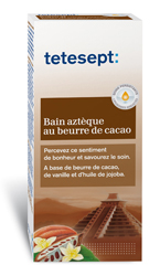 tetesept Aztekisches Kakaobutter Bad enthält eine einzigartige Kombination aus Kakaobutter, Vanille sowie Jojobaöl, ergänzt um reichhaltige Pflegeöle und kostbare Bade-Liposome. Lassen Sie sich vom süssen Kakao-Duft in die sagenumwobene Welt der Azteken entführen.