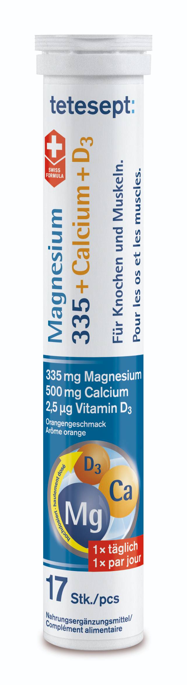 tetesept Magnesium 335 Calcium + D3 Brausetabletten zeichnen sich durch die spezielle Zusammensetzung wichtiger Vitalstoffe aus. Magnesium und Calcium tragen zur Erhaltung normaler Knochen und Zähne bei. Vitamin D trägt zu einer normalen Aufnahme/- Verwertung von Calcium und zur Erhaltung der normalen Muskelfunktion bei.