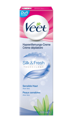 Die neue Veet Haarentfernungs-Creme mit Silk & Fresh Technology und einem neuen sensationellen Duft macht die Haarentfernung zum angenehmen Erlebnis. Es bleibt kein unangenehmer Geruch auf der Haut zurück. Die Haarentfernungs-Creme entfernt unerwünschte Haare effektiv, spendet Feuchtigkeit und bietet Dir seidig glatte Haut. Das Ergebnis sind seidig glatte Beine - bis zu zweimal so lange wie bei einer Rasur. Die Creme von Veet schneidet die Haare nicht ab, sondern löst sie vielmehr auf. Daher dauert es länger als nach dem Rasieren, bis unerwünschte Haare nachwachsen und der Nachwuchs fühlt sich weicher an.