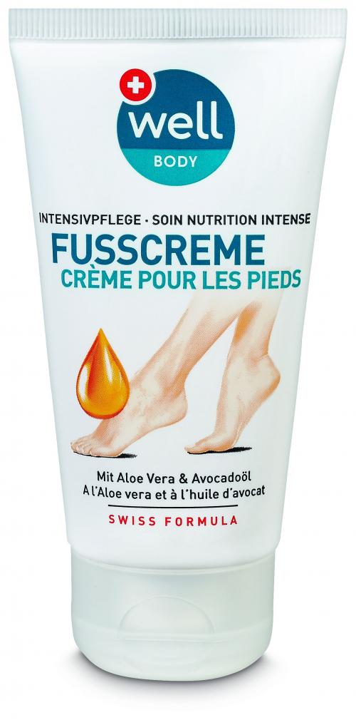 Die well Fusscreme mit Wohlfühlgarantie versorgt die Haut mit reichhaltiger Pflege - ideal für eine Fussmassage und für trockene Füsse! Die schnell einziehende Pflegecreme mit Aloe Vera und Avocadoöl verwöhnt die Haut mit intensiver Pflege und verleiht spröden und trockenen Füssen ein zartes Hautgefühl. Die Formulierung mit Panthenol schützt die Haut vor dem Austrocknen. Die Haut fühlt sich wunderbar gepflegt und geschmeidig an.
